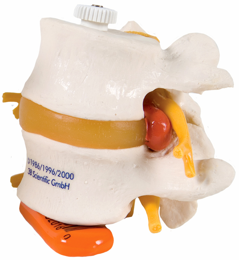 Flexibly mounted, with a prolapsed disk. Comes with spinal nerves and