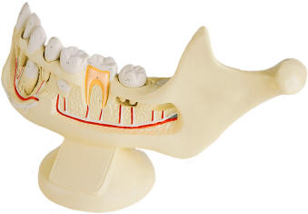 The adult jaw models shows the full adult complement of teeth. Three teeth