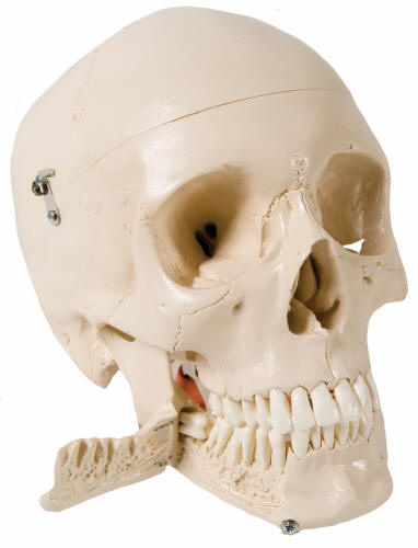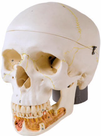 This dental skull with opened mandible exposes the dental roots with