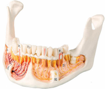 mandible can be opened to view the dental roots, spongiosa, nerve canal and an