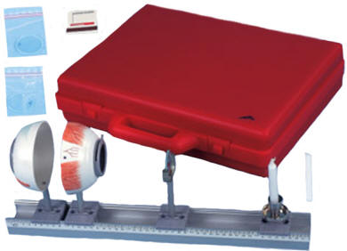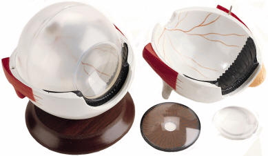 Six times life-size unbreakable vinyl plastic replica of the eye is packed