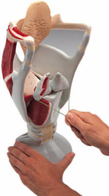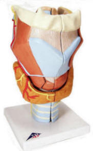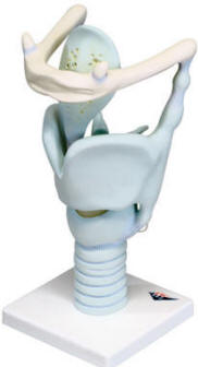 Functional replica of the human larynx, hyoid bone and epiglottis.