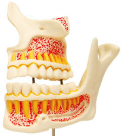 nerves exposed. The lower jaw is movable on the adult denture model.