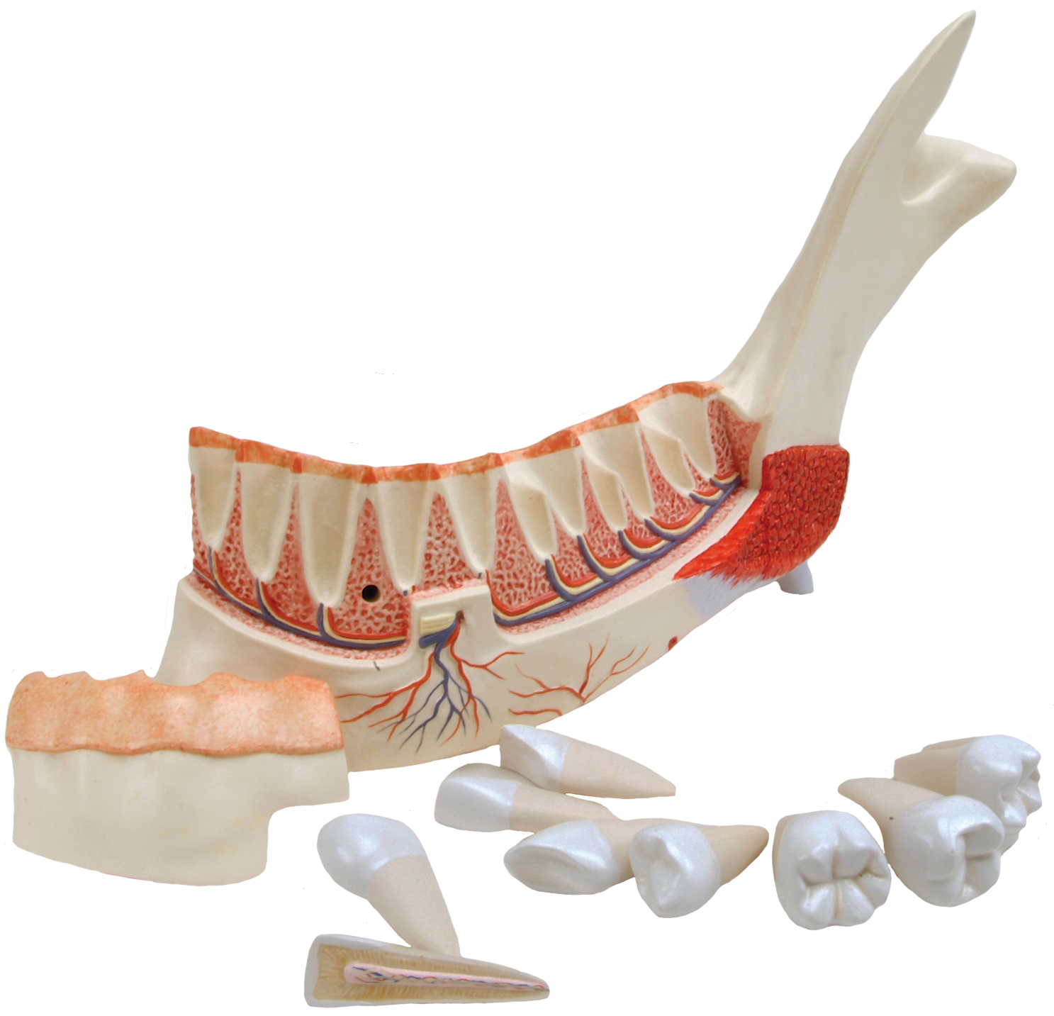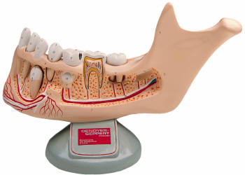 The adult jaw models shows the full adult complement of teeth. Three teeth