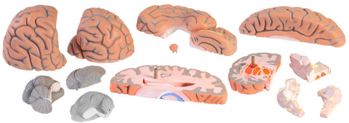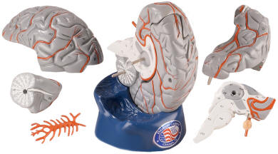 Shows arterial blood supply and divides into 8 parts. Steel pins keep this model’s 8 parts