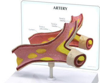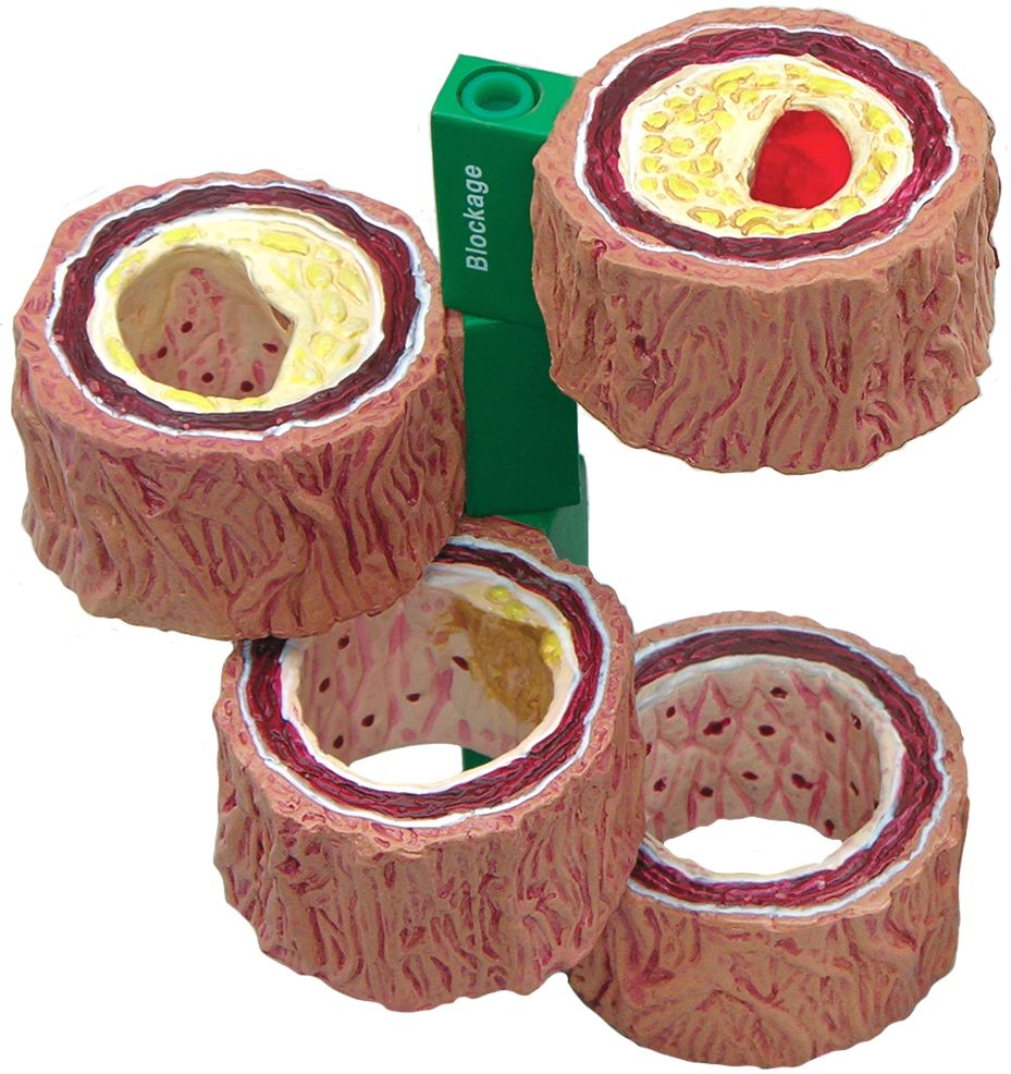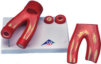 This models shows four sections of an artery demonstrating