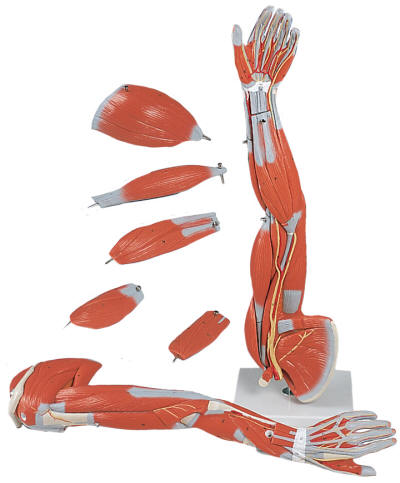 arm, triceps muscle of arm, long palmar muscle with radial flexor muscle