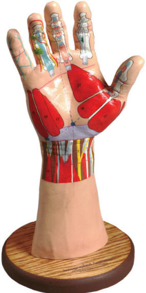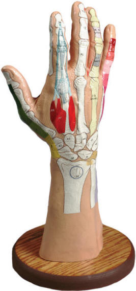 Full-size hand model shows the superficial and internal structures of the
