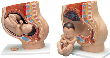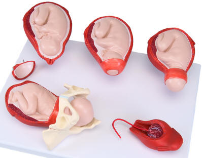 womb and pelvis, finish of head passage and (5) placenta in the womb. Each of the models is